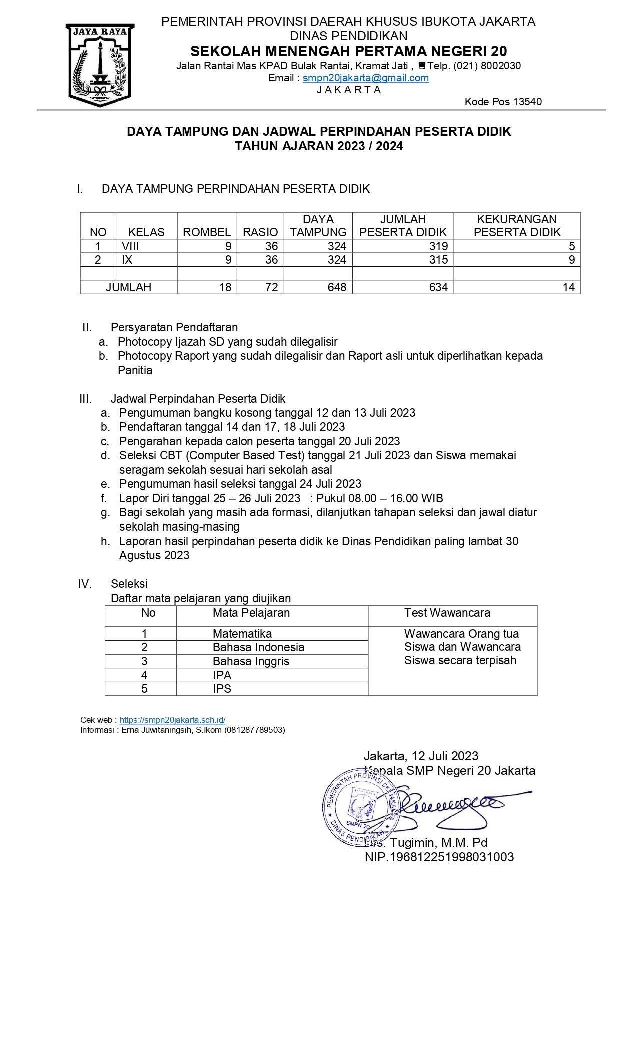 Bagaimanakah menurut Anda dengan informasi sekolah yang disajikan oleh portal resmi SMP Negeri 20 Jakarta ?