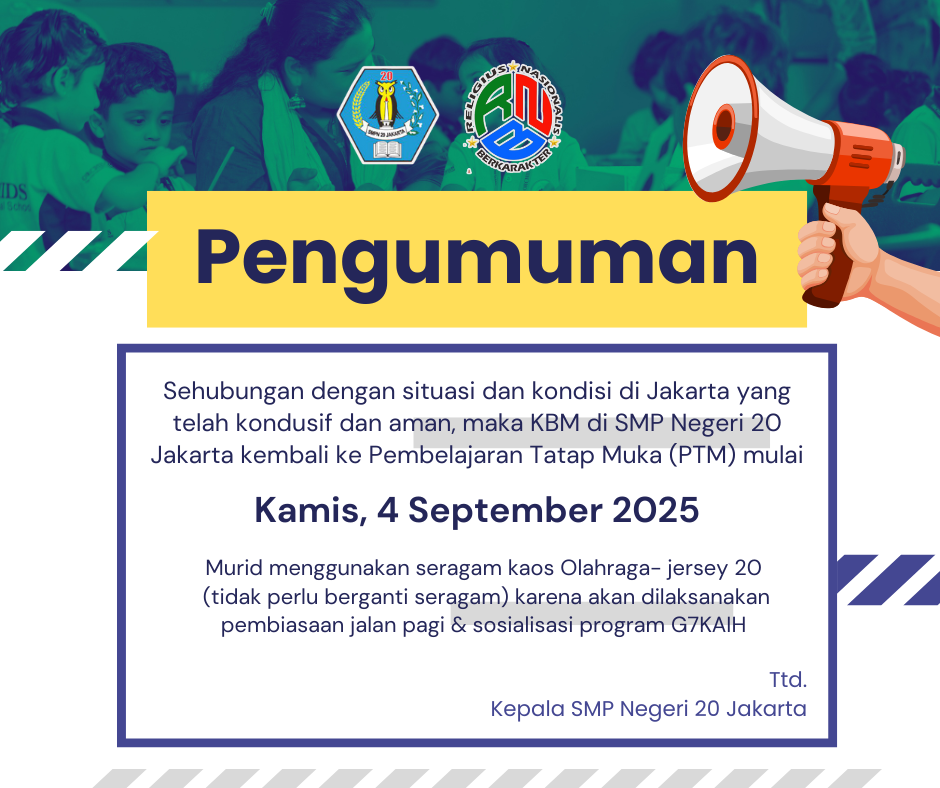 Jakarta, 28 Juli 2025 – SMP Negeri 20 Jakarta kembali melaksanakan kegiatan upacara bendera ru...